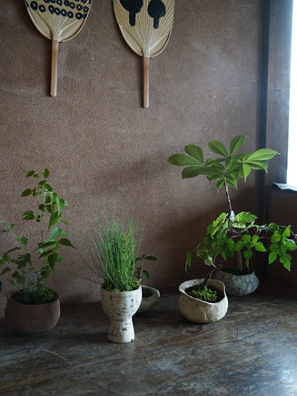 苗木の生産と育成のほか、盆栽に使う植木鉢も自ら作陶している。